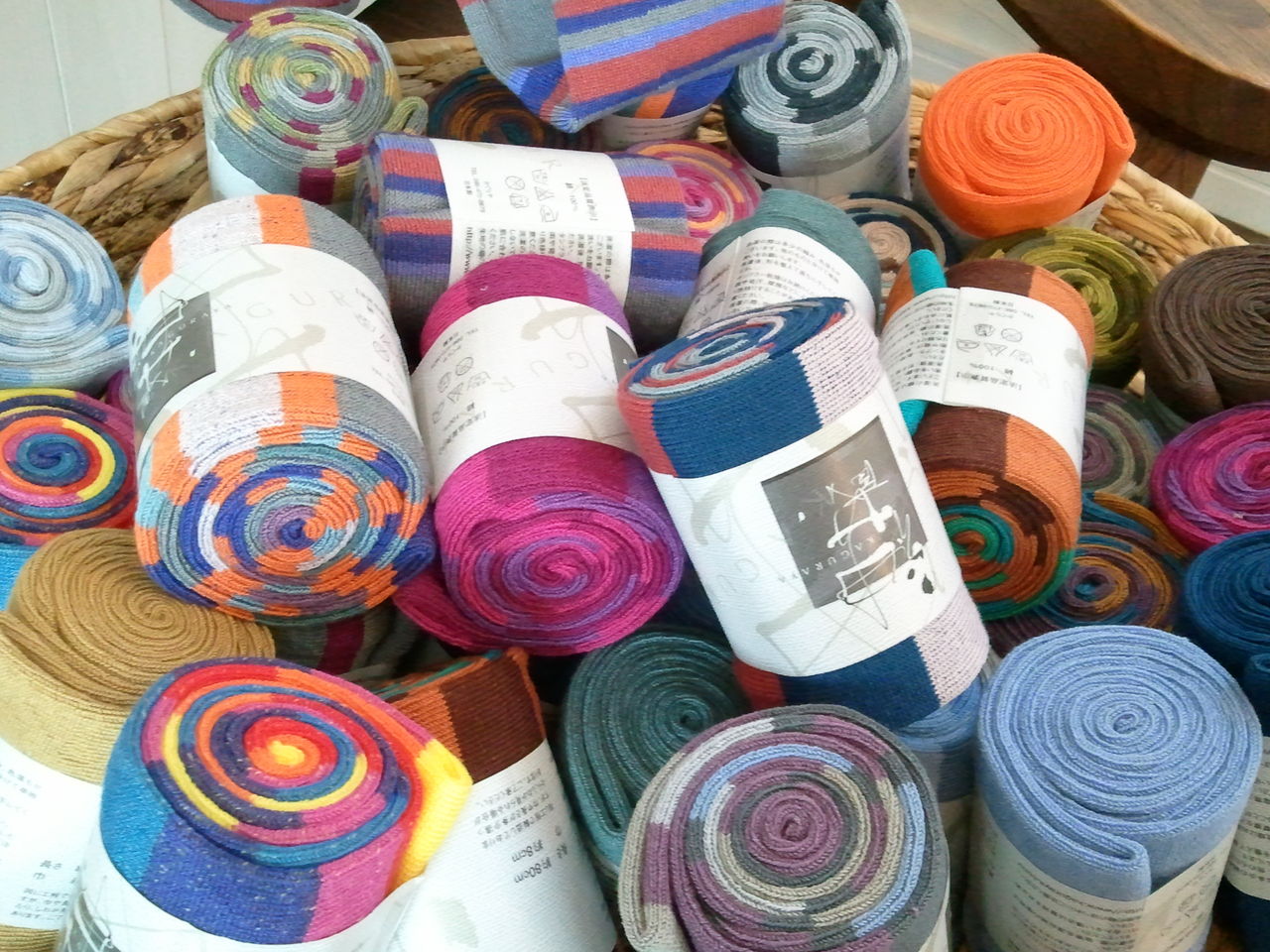 林源十郎商店の2階で見つけた「かぐらやロール」は衝撃的。靴下みたいな手触りの素材で、筒状になった約80センチくらいの商品。好きなサイズにハサミで切っても、切り口がほつれない編み方をしているとか。もともと畳のヘリを作っている会社で、その技術を応用した画期的なアイテムらしい。