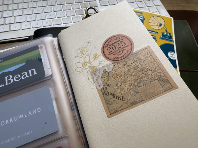 パスポートサイズの子も健在。今は図書館のカードがメインで、買い物なんかにはあまり連れて行かなくなったけど、1冊挟んであるリフィルが旅行で活躍することを発見。飛行機や列車の時刻をメモしておいたり、レシートのない出費を記録しておいたり。小さいから旅行先でも邪魔にならない。以前はレギュラーサイズを連れて行ってたけど、結局帰宅してからしか書かないので今は留守番。その代わりに今はパスポートサイズが旅のお供に昇格。